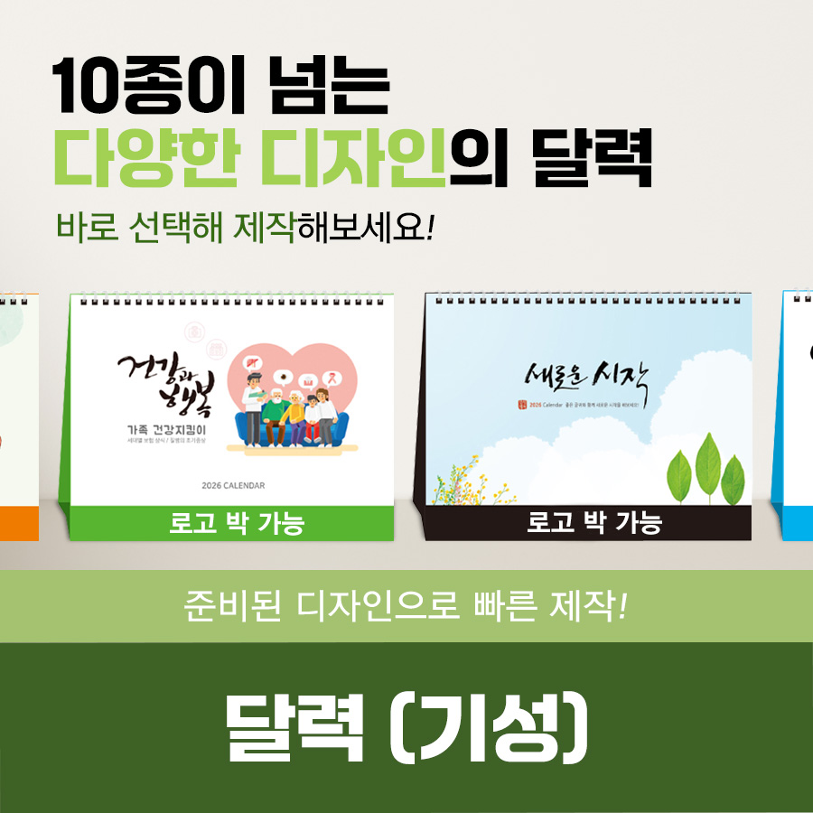 달력(기성)상품은 준비된 디자인으로 빠른 제작할 수 있습니다.